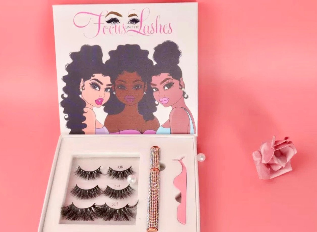 Three pair of luxury mink eyelashes Waterproof eyeliner lash glue Eyelash tweezers Lash length 20mm-22mm-25mm